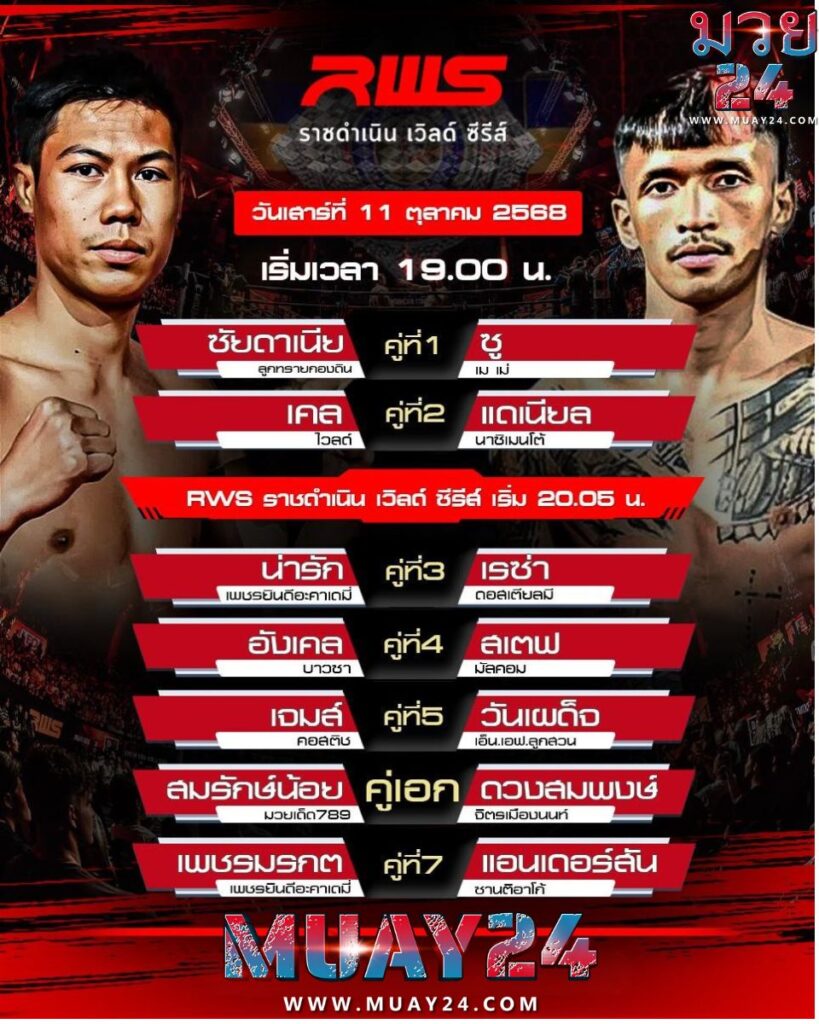 โปรแกรมมวย ศึก RWS ราชดำเนิน เวิลด์ ซีรีส์ โปรแกรมมวยประจำวันที่ 11 ตุลาคม 2025